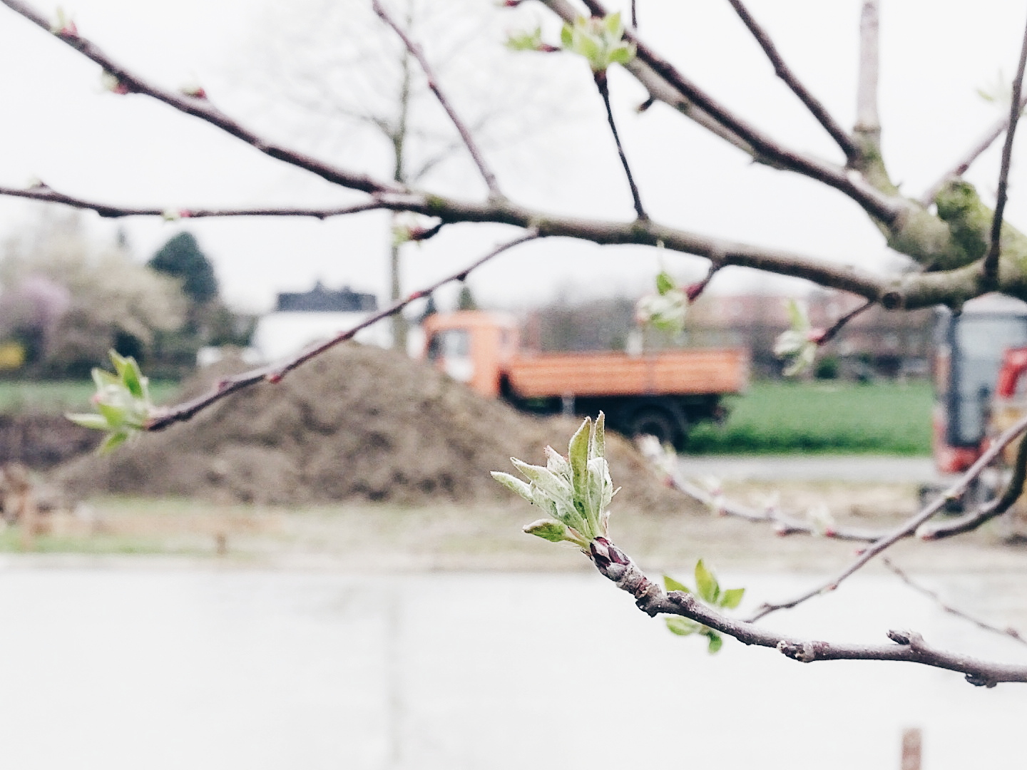 Wiese plötzlich weg… Also vollgestellt, ausgegraben, umgegraben und mit Holzbrettern und
